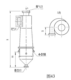 旋風(fēng)除塵器由筒體、錐體、進(jìn)氣管、排氣管等組成。其主要工作原理是基于離心力的作用;遵循流體力學(xué)基本規律,依靠分散相和連續相之間的相對運動(dòng)來(lái)實(shí)現非均相混合物料的分離。旋風(fēng)除塵器根據氣體在除塵器內的旋轉方向不同,由進(jìn)口方向順時(shí)針旋轉的為右旋(S)和逆時(shí)針旋轉的為左旋(N)兩種。旋風(fēng)除塵器的優(yōu)點(diǎn)是結構簡(jiǎn)單,造價(jià)便宜,體積小,無(wú)運動(dòng)部件,操作維修方便,壓力損失小,動(dòng)力消耗;對于捕集、分離、回收5μm以上的粉末效率較高。旋風(fēng)除塵器適用于工業(yè)通風(fēng)除塵,工業(yè)氣體中物料的回收,也可用于氣體精細過(guò)濾預處理。旋風(fēng)除塵器已被廣泛應用于化工、石油、冶金、建筑、礦山、電力、輕工等工業(yè)部門(mén)。 |